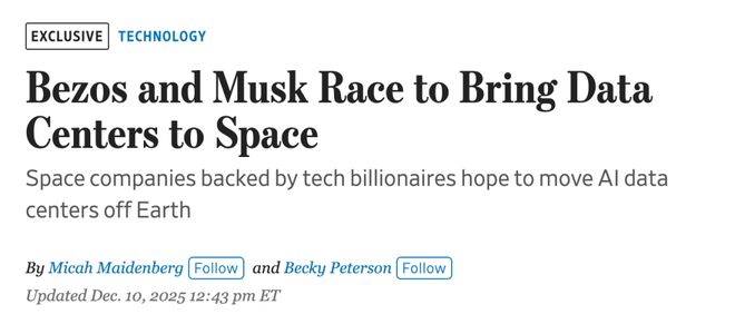今天,WSJ一篇独家报道,揭秘了马斯克和贝索斯竞相,将其数据中心送上太空。