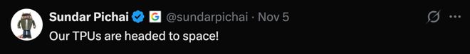 同在上个月初,谷歌官宣了Project Suncatcher,要把自研的GPU太阳卫星送上天。